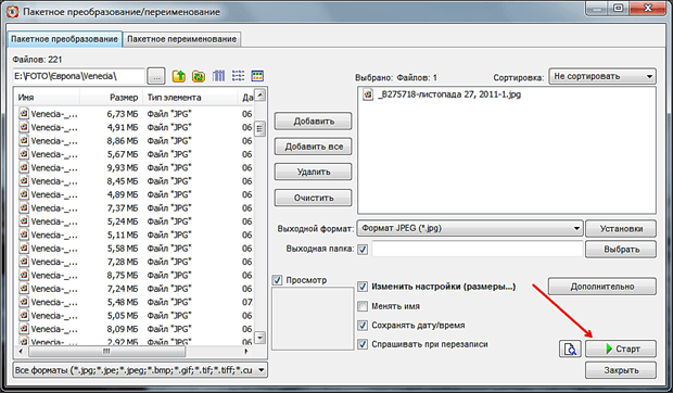 Все, теперь можно запускать процесс пакетного сжатия фотографий.