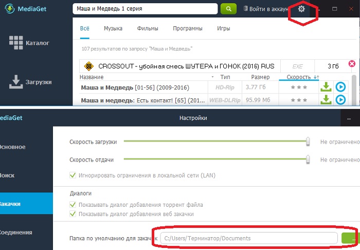 Возьмем для примера 2 самые популярные программы uTorrent и Media Get. Для того, чтобы ошибки не возникало, задайте в настройках программы папку, в которую будут происходить закачки. В Медиа Джет: