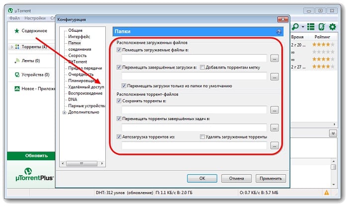 Настроить папку для сохранения файлов в uTorrent