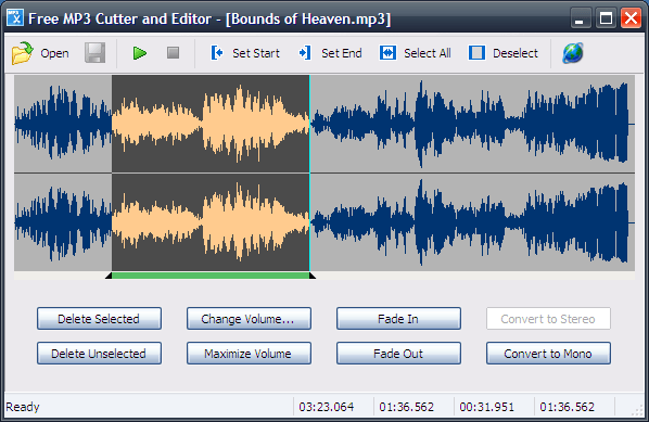 Free MP3 Cutter and Editor – легкая и быстрая программа для нарезки музыки в формате MP3. Сохранить результаты работы с программой можно в форматах MP3 или WAV. Кроме простой обрезки программа позволяет изменять громкость звука, добавлять эффект затухания звука, а также превращать моно в стерео и наоборот.