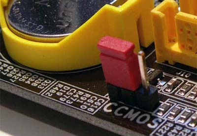 2) Сбросьте установки CMOS. Джампер сброса настроек БИОСа обычно располагается неподалеку от батарейки на материнской плате и маркируется CLR_CMOS или CCMOS. Это джампер, на которм 3 контакта. 1 и 2 контакты замкнуты в обычном режиме.
