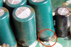 1) В первую очередь проверку материнской платы следует начать с осмотра и поиска видимых дефектов (трещины, нагар). Визуально проверьте все конденсаторы на материнской платы на предмет вздутости. Взорвавшиеся и вздутые конденсаторы зачастую являются причиной неработоспособности материнской платы. Если вы обнаружите вздутые конденсаторы, то материнскую плату необходимо заменить. Стабильно работать она точно не будет.