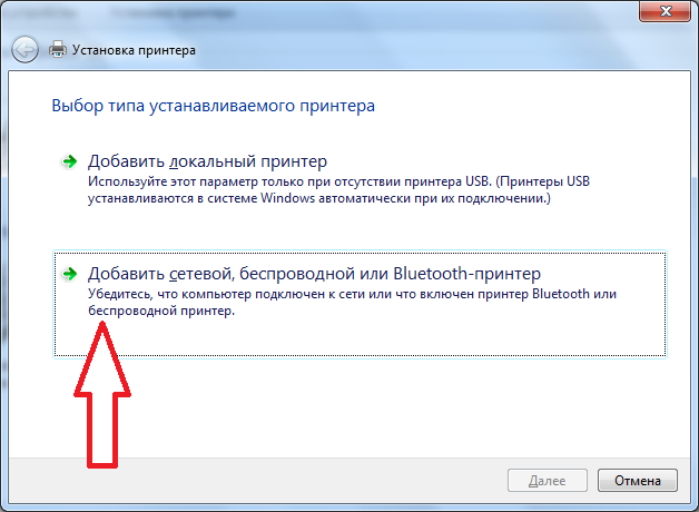 После этого откроется окно «Установка принтера». Здесь нужно нажать на кнопку «Добавить сетевой, беспроводной или Bluetooth-принтер».