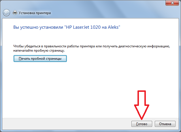 А потом нажимаем на кнопку «Готово». Также при необходимости на этом этапе настройки можно заказать печать пробной страницы.