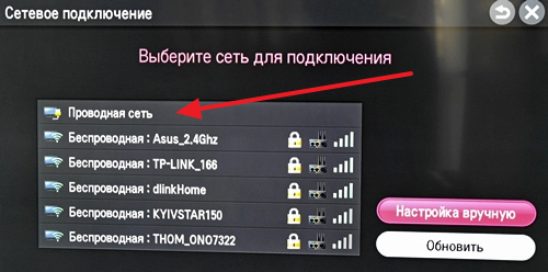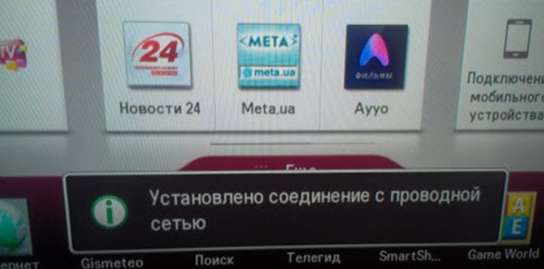Если в момент подключения сетевого кабеля телевизор был включен, то на экране должно было появиться сообщение о подключении к проводной сети.