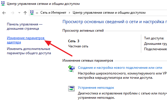 После того как два компьютеры соединены сетевым кабелем, можно приступать к настройке сети между ними. Для этого открываем «Панель управления» на одном из компьютеров и переходим в раздел «Сеть и Интернет – Центр управления сетями и общим доступом». В этом окне нажимаем на ссылку «Изменение параметров адаптера».