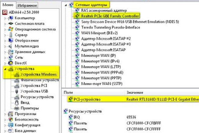 Все выше описанные способы получения информации о сетевой карте используют встроенные в операционную систему средства. Но, вы можете прибегнуть к помощи сторонних программ. Например, можно использовать программу AIDA64. В данной программе нужно открыть раздел «Устройства – Устройства Windows – Сетевые адаптеры».