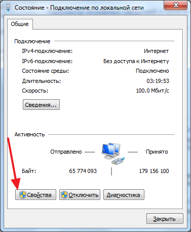 Дальше откроется окно с информацией о подключении. Здесь нажимаем на кнопку «Свойства».