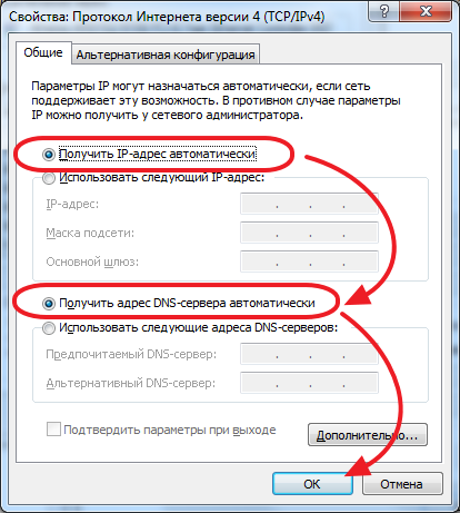 Большинство Интернет провайдеров используют автоматическую раздачу IP адресов, также работают и домашние роутеры. Поэтому в большинстве случаев, для нормальной работы сети в настройках подключения должно быть включено автоматическое получение IP адресов.