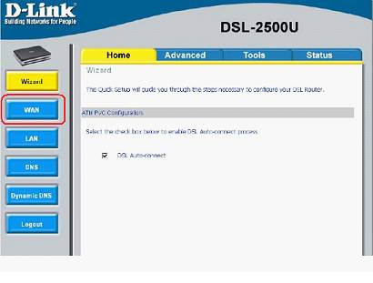 Выполняется настройка следующим образом (D-Link DSL-2500U):