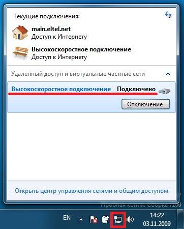 - когда подключение создано, осуществить с его состоянием можно очень просто (значок присутствует на панели задач, в левой её части).