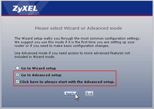 - после ввода логина и пароля ставим галочку в двух местах («GotoAdvancedSetup» и «Clickheretoalwaysstart … .»);