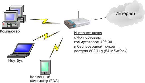 Схема, реализованная таким образом, довольно проста. Между глобальной сетью и ПК находится лишь два устройства: Wi-Fi-роутер и ADSL- модем. Либо одно, если в ADSL-модеме имеется встроенный модуль Wi-Fi, позволяющий работать ему в режиме роутера.