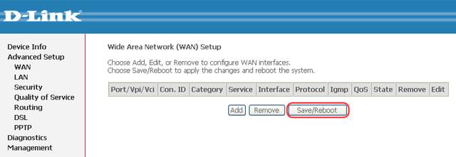 - когда старые настройки удалены, необходимо нажать кнопку «Save/Reboot».