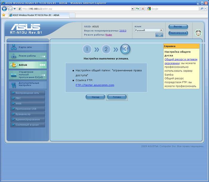 Благодаря перечисленным выше функциям, при необходимости можно легко и быстро обмениваться с друзьями различной информацией, независимо от места их нахождения. При наличии портативного жесткого диска, подключенного к Asus RT N13U, пользователь может создать у себя дома миниатюрный FTP.