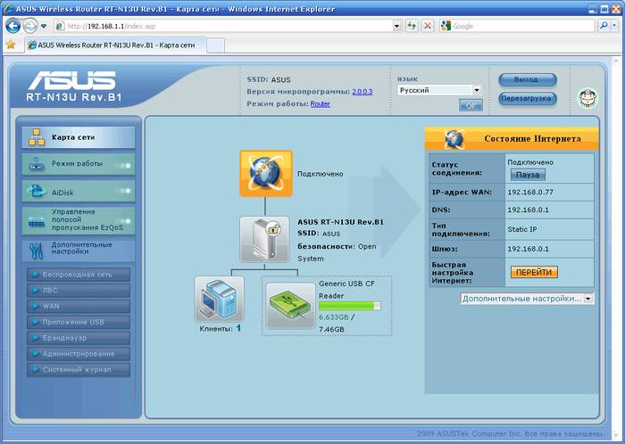 Чтобы сделать это, достаточно подключить RT N13U к компьютеру после чего: