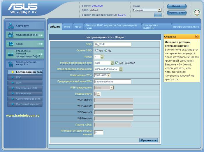 - «Предварительный ключ WPA» — следует ввести набор цифр и символов, длина пароля должна быть не менее 8 и не более 63 (желательно выбирать трудно угадываемый пароль);