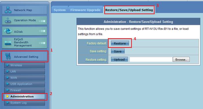 При необходимости можно вернуть заводские установки при помощи Web-интерфейса: