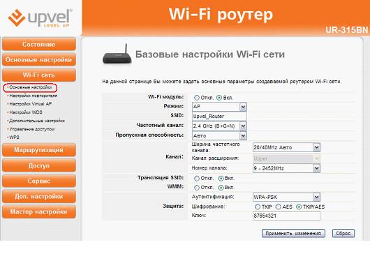Если у Вас возникла потребность сменить в настройках Ваш ключ доступа к роутеру Upvel, то: