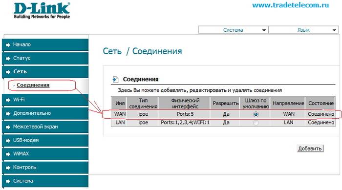 - далее нажимаем на саму строку wan-соединения;