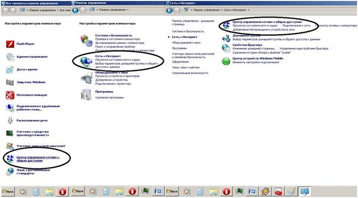 - в открывшемся окне необходим войты по ссылке ярлыка «Центр управления сетями и общим доступом» или «Сеть и интернет», а далее – «Центр управления сетями и общим доступом»;