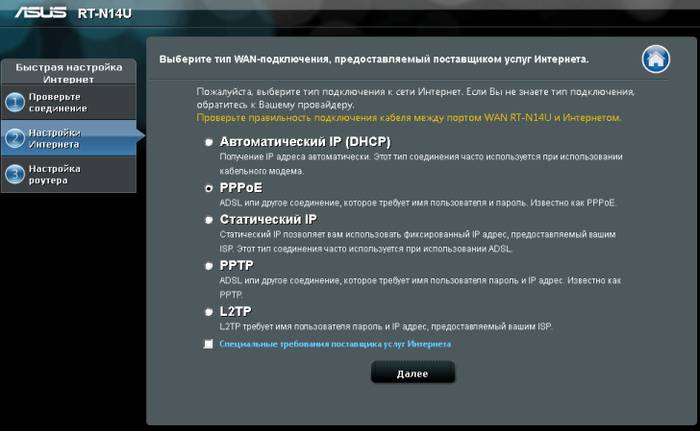 Если все действия указанные выше были совершенны правильно, вы попадете на страницу, где осуществляется настройка роутера Asus RT N14U.