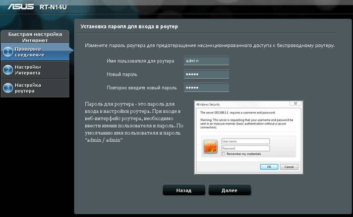 Отныне, введенный пароль и логин — это личный доступ к веб интерфейсу, в котором будет осуществляться настройка роутера Asus RT N14U.