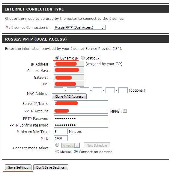- при динамическом ІР-адресе указывается Dynamic РРРоЕ;