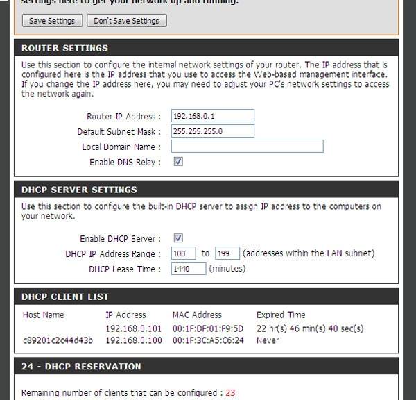- длительность действия предоставляемого ІР-адреса (DHCP Lease Time) также можно не изменять;