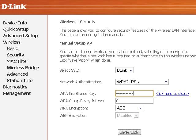 - пункт WEP Encryption заполните вариантом AES. Подтвердите свой выбор;