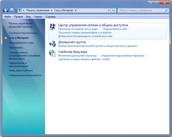 - тут находим раздел «Сеть и интернет» и в нем «Центр управления сетями и общим доступом »;