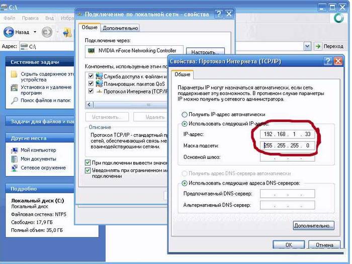 Для этого необходимо зайти в свойства «Протокол Интернета версии 4 TCP/IPv4», как это сделать описано выше. В соответствующих полях IP-адреса и MAC-адреса ввести необходимые данные. Чаще всего, это 192.168.1.33, для IP и 255.255.255.0, для Маски. Сохраняем, закрываем окна.