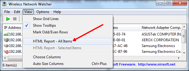При необходимости список найденных компьютеров можно сохранить в формате HTML. Для этого нужно открыть меню «View» и выбрать пункт «HTML Report».
