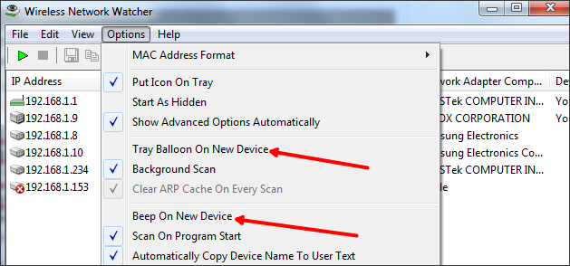 Также вы можете включить оповещение о подключении новых устройств к сети. Это делается при помощи функций «Tray Balloon on new device» и «Beep on new device».