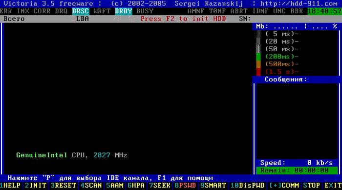 - выберем канал, к которому подключен проблемный жесткий диск, нажав на клавиатуре латинскую «Р»;