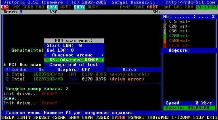Если появление битых сегментов связано с программными сбоями, то их можно восстановить с помощью специализированного софта. Одной из таких программ для восстановления битых секторов hdd является Victoria. Утилита выпускается в двух версиях – для Windows и DOS. Наиболее эффективным будет восстановление через DOS, так как при работе ОС некоторые сектора могут быть заняты, а значит – недоступны для сканирования.