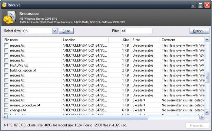 Процедура использования программы Recuva выглядит следующим образом: