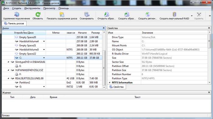 R-Studio — мощный программный пакет, используемый профессионалами в области восстановления. При отсутствии физических повреждений носителя, с высокой вероятностью спасет утерянную информацию. С расширением функционала и упрощением интерфейса, программа стала доступна обычным пользователям. Чтобы начать восстановление данных с карты памяти microSD, подключите ее к компьютеру через адаптер и запустите R-Studio. В главном окне будут отображены все подключенные носители.