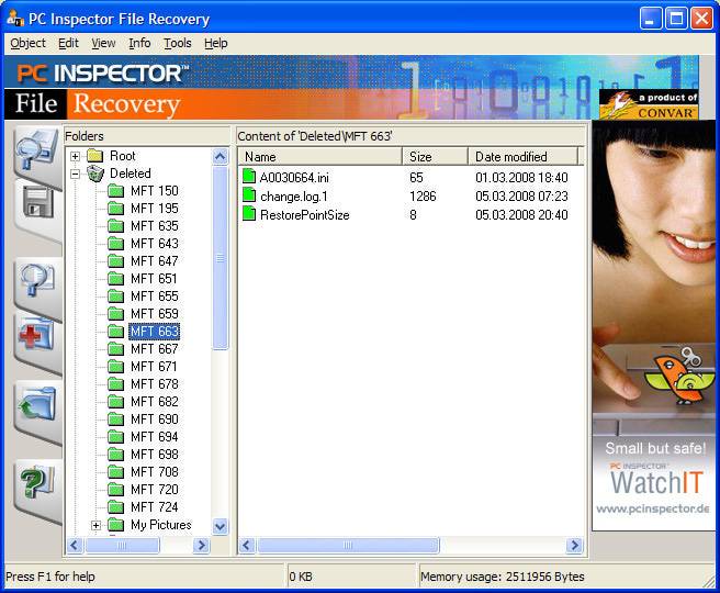 - возможность просмотра содержимого любого типа, и оценка шансов на успешный его возврат;