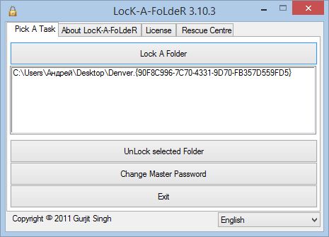 LocK-A-FoLdeR – это идеальное решение для самых не требовательных пользователей. Программа использует только один мастер-пароль и имеет очень простой пользовательский интерфейс. Более того, программа не предлагает вообще никаких настроек.