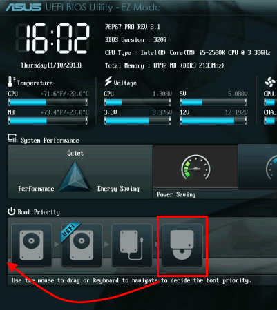 Как выставить загрузку с диска в данном случае? Для этого выполните следующее: