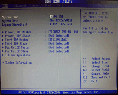 На ноутбуках обычно встречается версия AMI BIOS. Выглядит она так:
