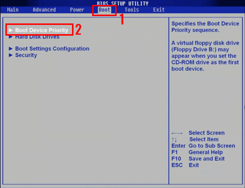 - Откройте вкладку Boot и выберите пункт «Boot Device Priority».