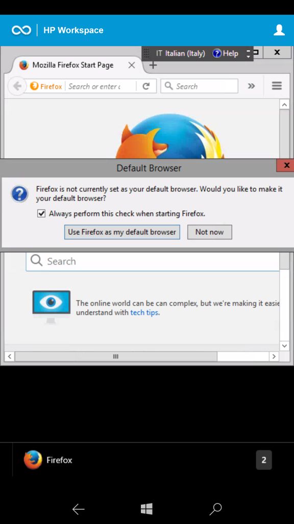 Чтобы хоть как-то восполнить этот пробел, компания HP разрабатывает сервис HP Workspace, который был анонсирован в рамках недавней выставки MWC 2016 вместе с новым смартфоном бизнес-класса Elite x3. По сути HP Workspace является каталогом x86 программ, с которыми можно работать как на экране смартфона, так и через Continuum.
