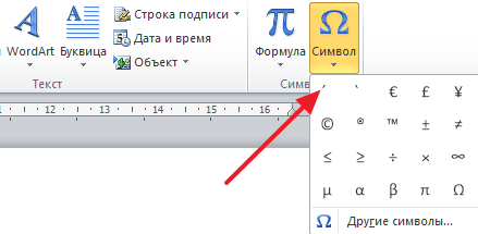 Если вы набираете текст в текстовом редакторе от Майкрософт, то для вставки ударения вы можете использовать функцию под названием «Символ». Данный способ не такой быстрый, как два предыдущих, но он не требует никаких числовых кодов. Более того, даже клавиатуру использовать не придется, поскольку все делается с помощью мышки.