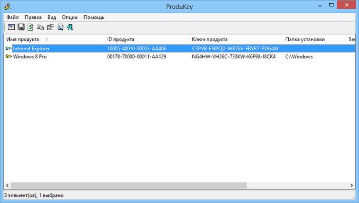 Все, что от вас требуется, загрузить архив, распаковать его и запустить ProduKey.exe. Программа запуститься и мгновенно отобразит соответствующую информацию.