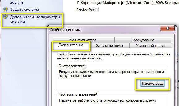 3. В блоке «Быстродействие» нажмите кнопку «Параметры… ».