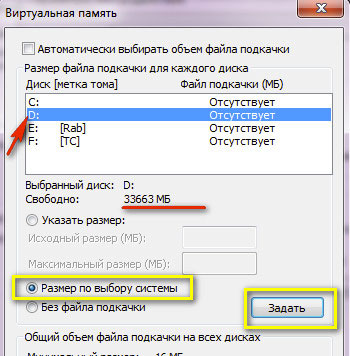 В этом случае выбор размера pagefile.sys вы всецело доверяете Windows. Система автоматически будет варьировать данную настройку (уменьшать/увеличивать при необходимости количество Мб).