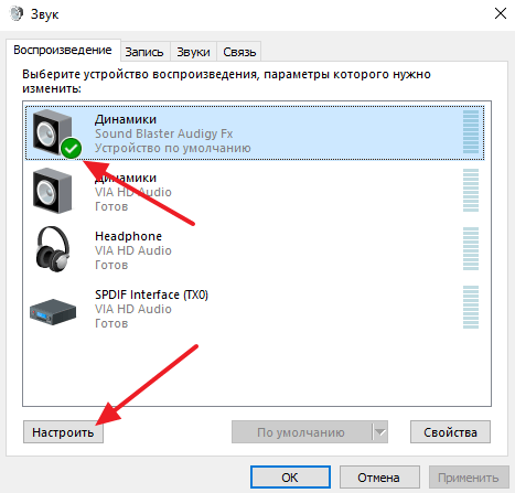 Также звук может не работать из-за неправильной конфигурации колонок. Например, если у вас только две колонки, а в настройках указана звуковая система 5.1, то звук может отсутствовать или быть сильно искаженным. Для решения этой проблемы нужно выделить активные колонки и нажать на кнопку «Настроить».