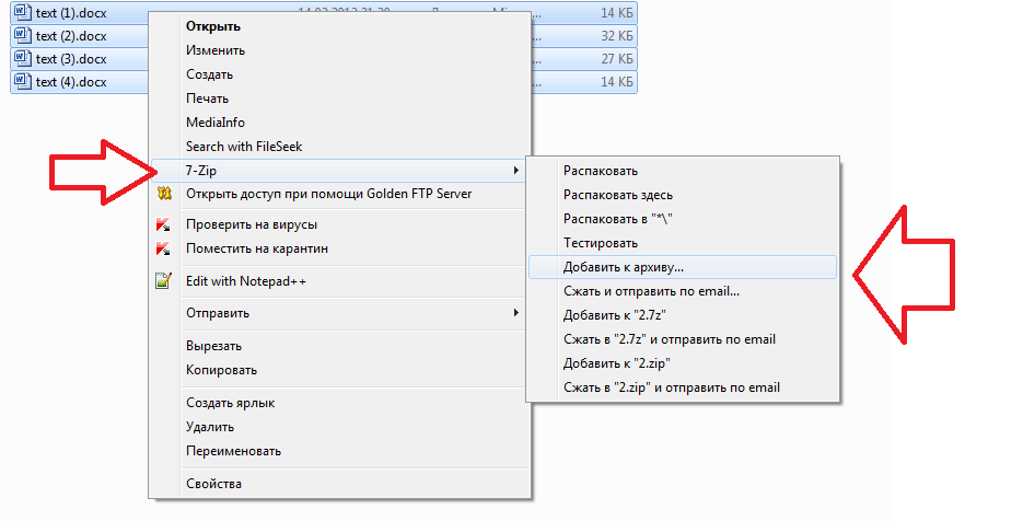 Добавить к «Название папки». 7z – выбранные файлы будут заархивированы в архив 7z с настройками по умолчанию.